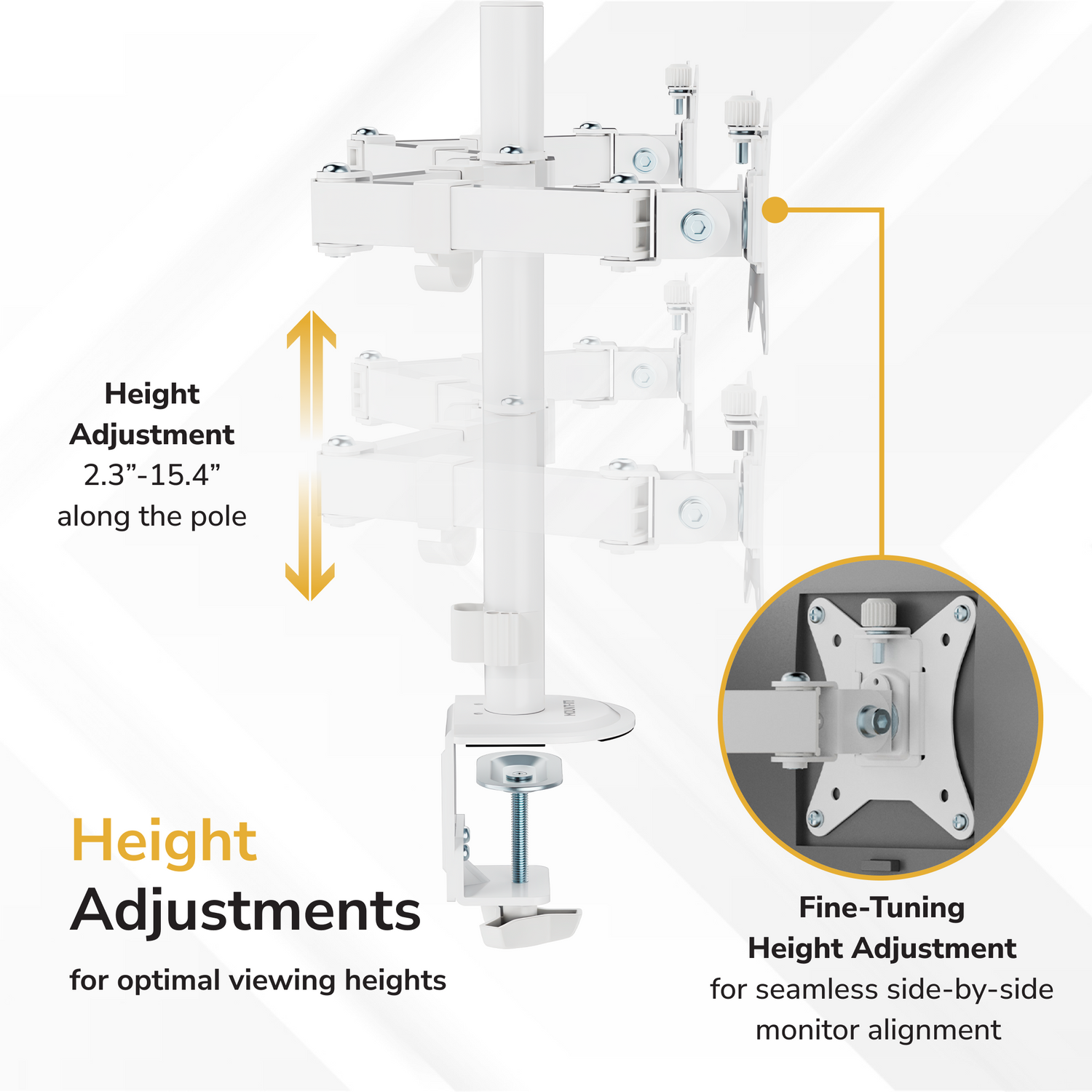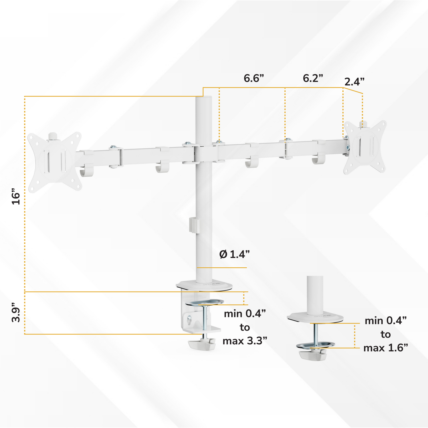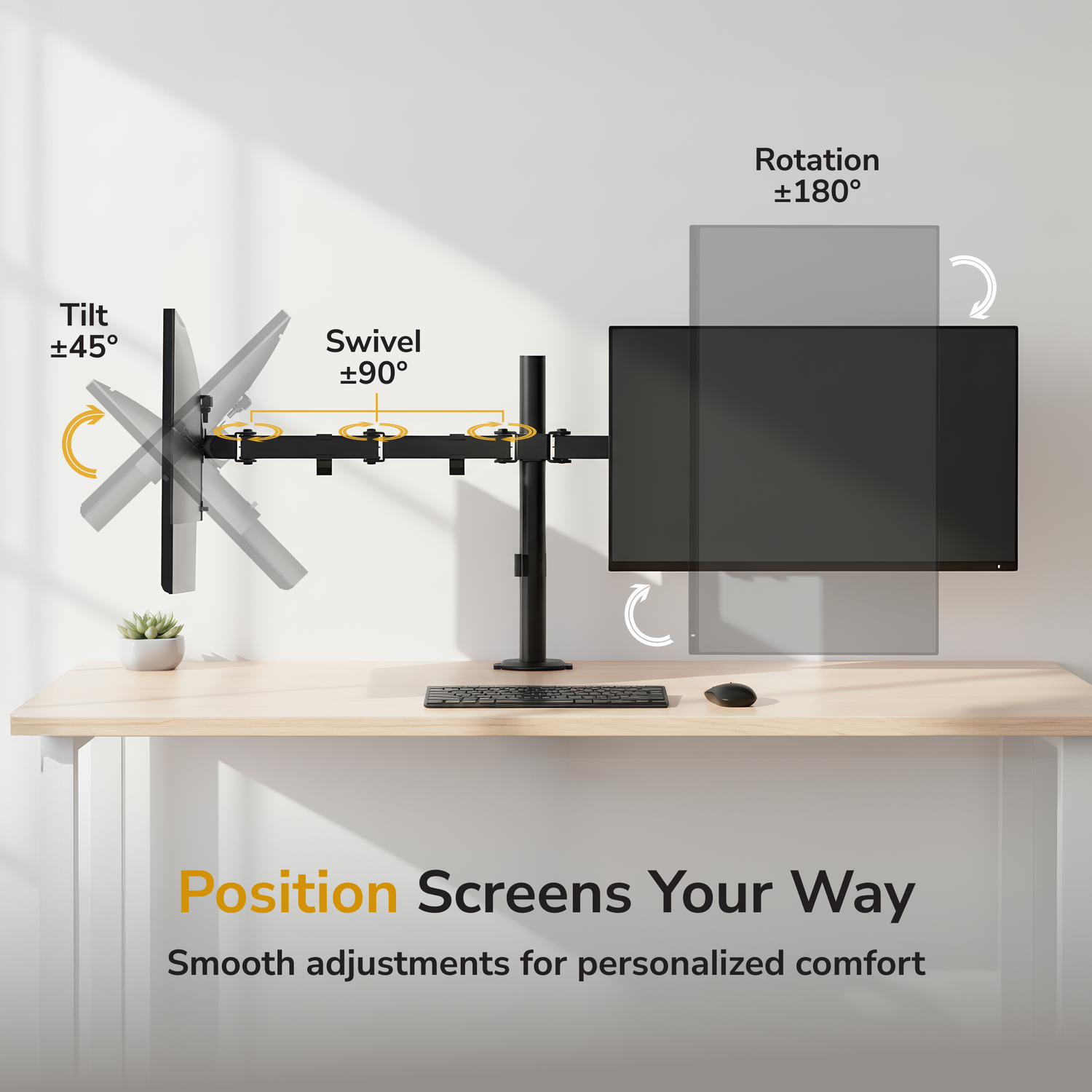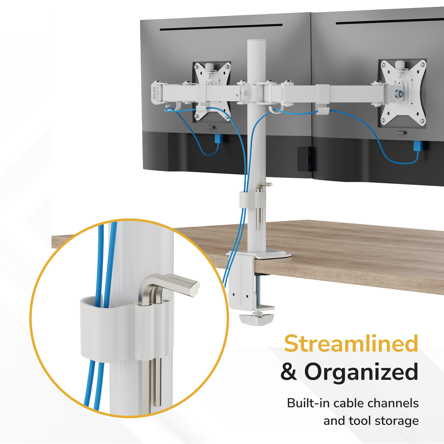Mount It products are designed for quick and frustration free installation. Full Motion Dual Monitor Desk Mount includes all required hardware, clearly written instructions, and a step by step guide specific to this product.