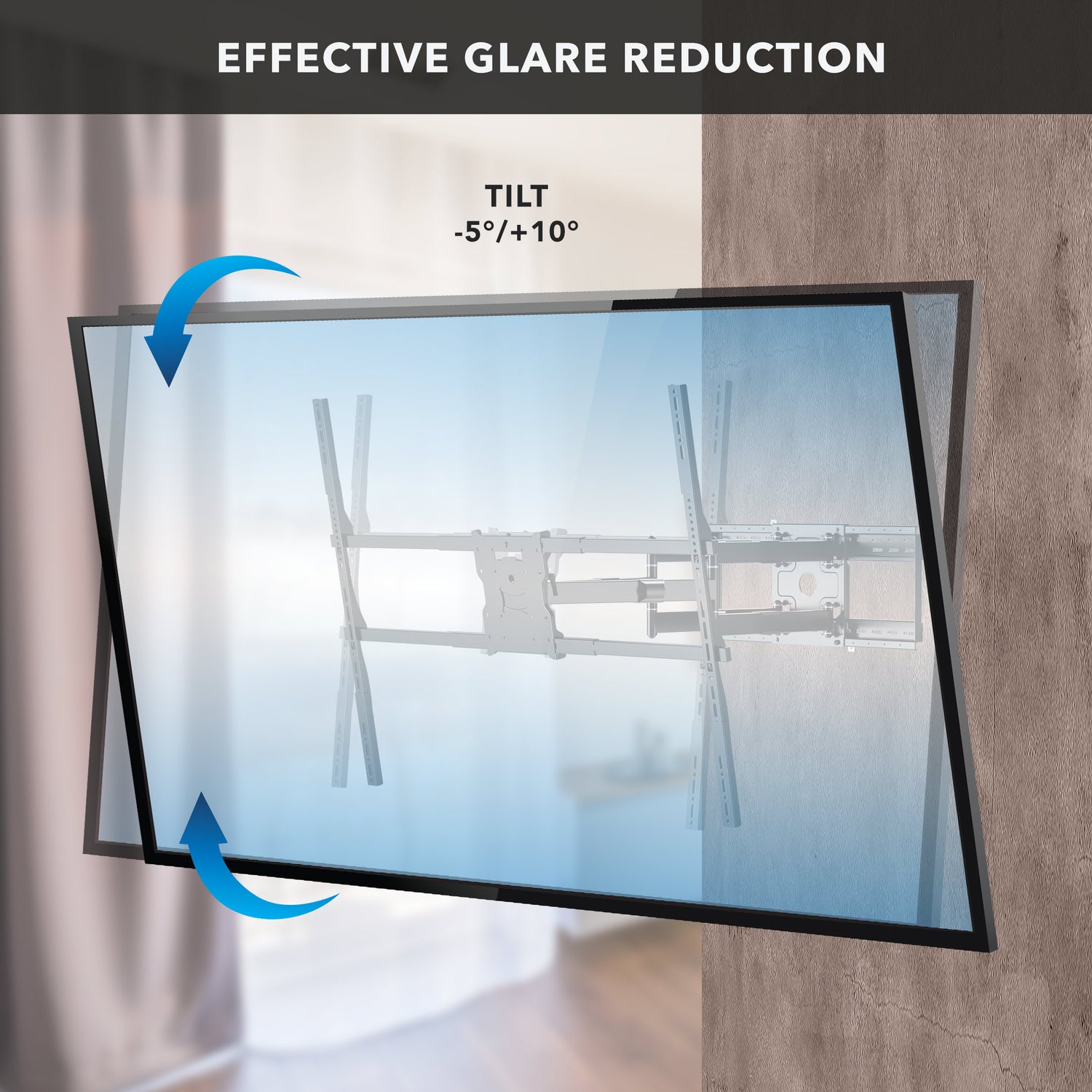 | Upgrade your setup with the Mount-It! Beast XXL Full Motion TV Mount — a heavy duty TV mount designed for extra large TVs up to 140 inches and 275 lbs. Engineered for the biggest screens, this future-proof articulating TV wall mount is made of premium high-strength steel and supports VESA patterns up to 1200x900, making it ideal for 90-inch, 100-inch, and even larger displays. The dual-stud TV mount extends up to 38.6 inches from the wall and offers smooth tilt and swivel adjustments for the perfect viewing angle from any seat. When retracted, it maintains a streamlined 4.3-inch profile, keeping your screen close to the wall without sacrificing flexibility. Whether you’re mounting on 24-inch studs or a concrete wall, this commercial-grade TV wall mount includes a drill template, bubble level, and hardware for a hassle-free installation. Designed for versatility, stability, and reach, it’s the best full motion TV mount for home theaters, businesses, and digital signage environments. *Please note: This mount is not compatible with VESA patterns between 200x200 and 600x200. Check all compatible VESA patterns under "Specifications" before purchase.