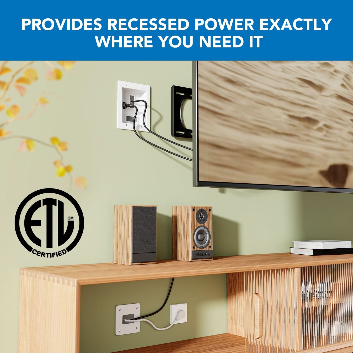 2-piece kit provides recessed power and hides unsightly cables behind the wall for a clean, sleek entertainment space