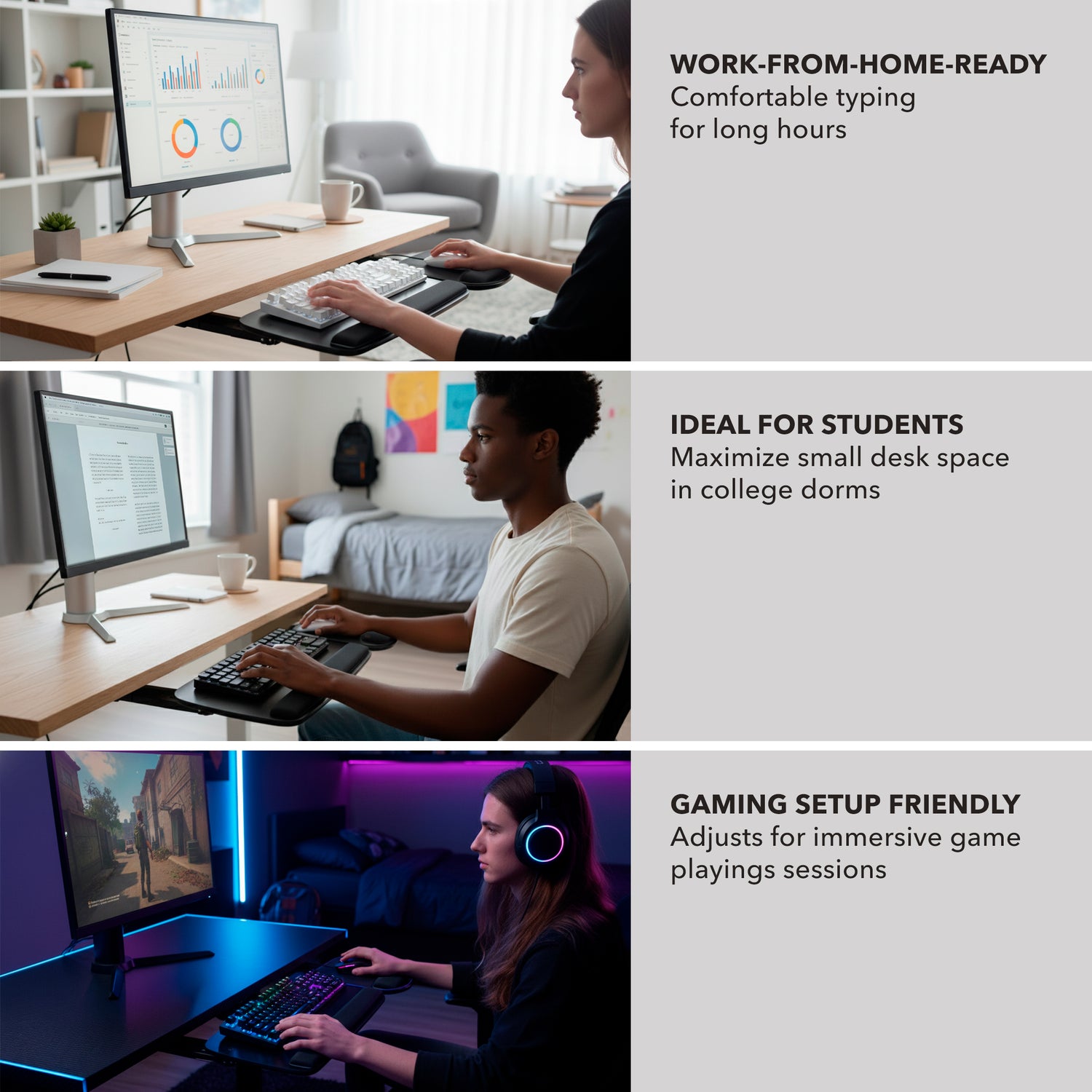 Our under desk keyboard tray saves space and helps to improve your posture while working
